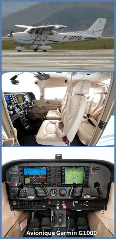 Acheté neuf en 2008, le Cessna 172 SP G1000 est un avion 4 places, tout métallique, très confortable, principalement utilisé pour le voyage. Il est équipé d’une avionique moderne (EFIS) en Garmin G1000 couplé à un pilote automatique, IFR, équipé d’un moteur à injection et d’airbag.